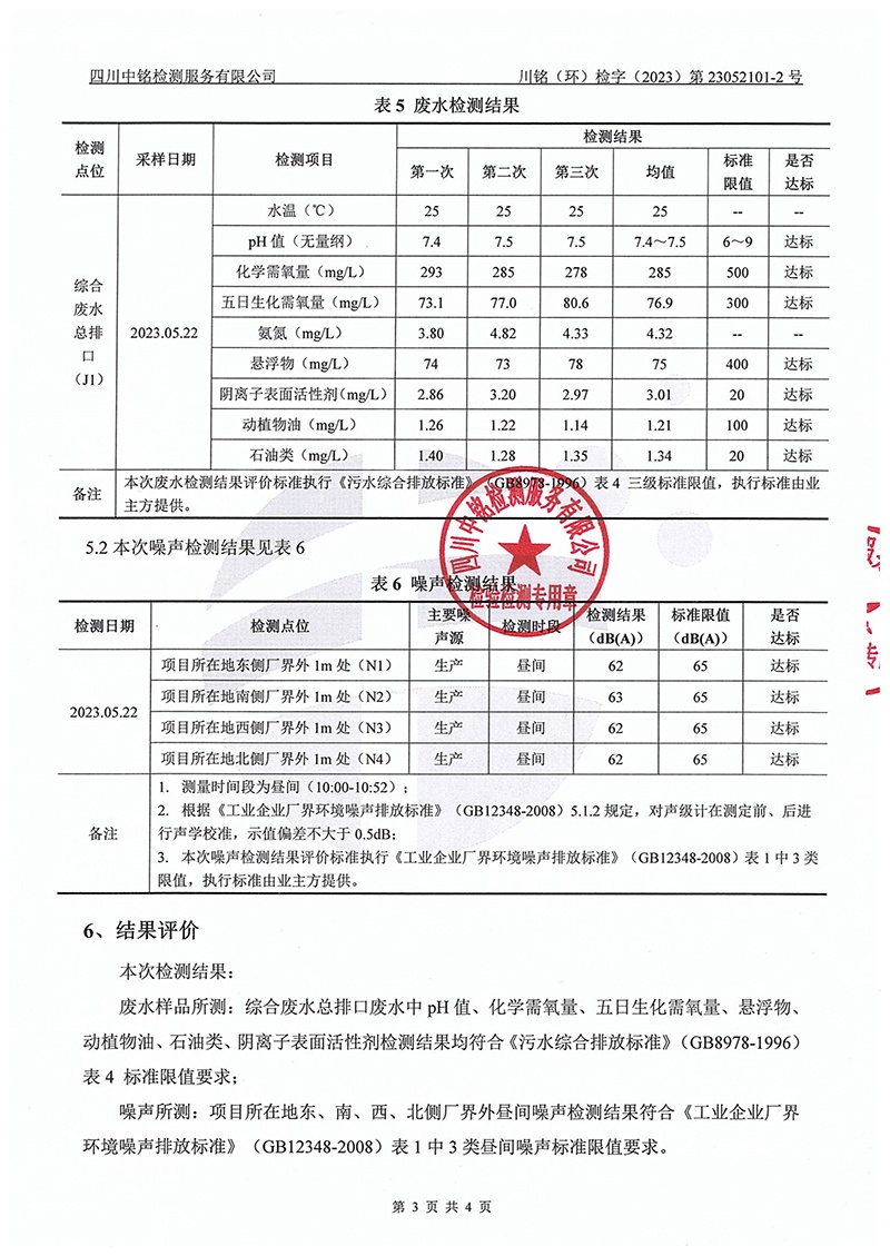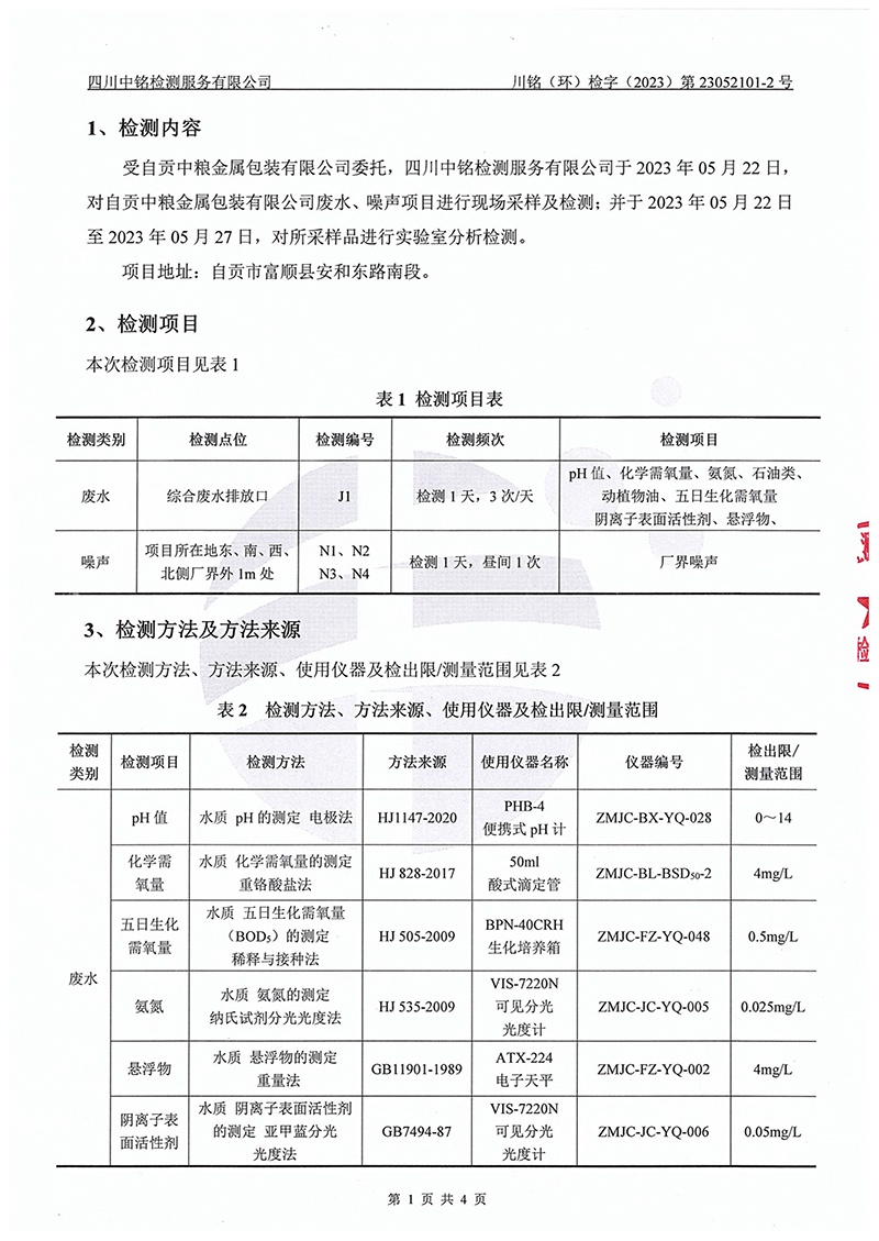 自貢中糧金屬包裝有限公司廢水、噪聲監(jiān)測報告